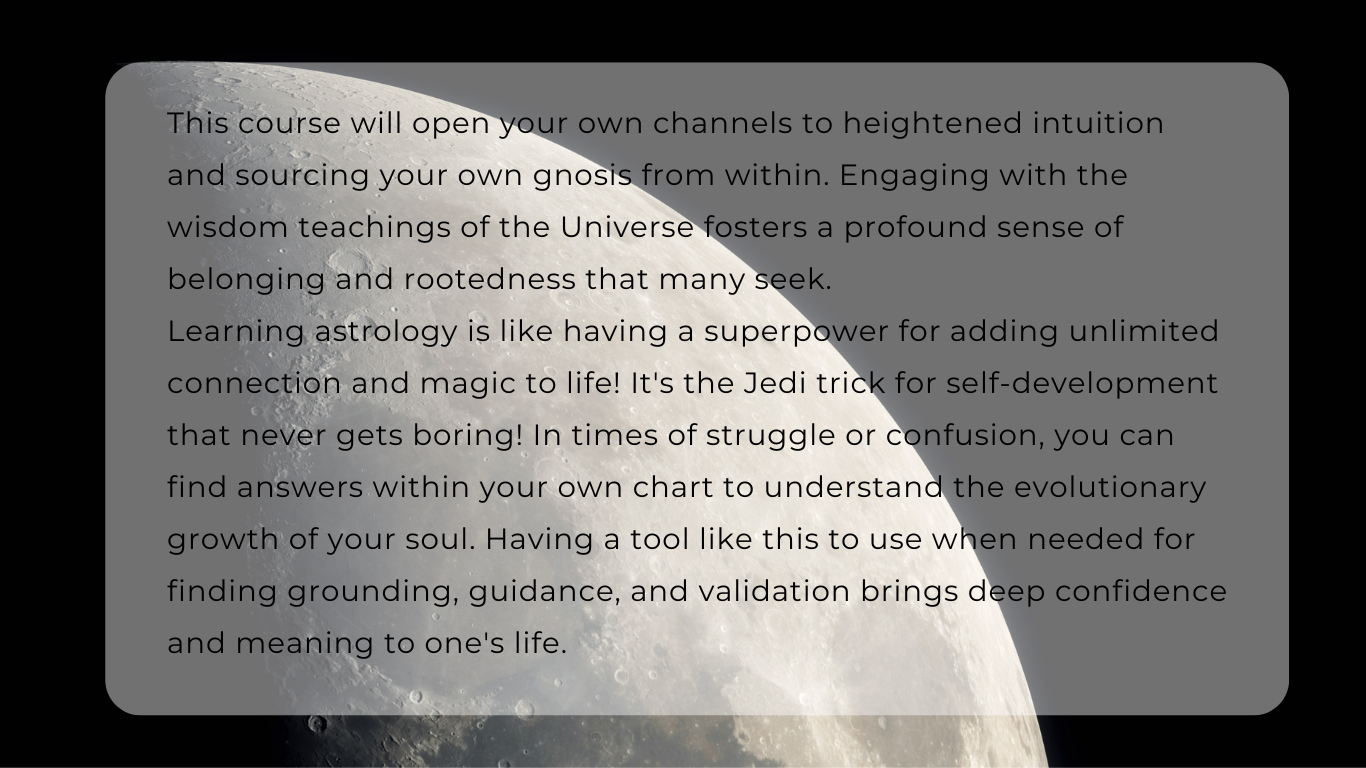 This isn’t just about learning astrology. It’s about expanding your capacity as the conscious creator of your dreams and intentions and live your best life.