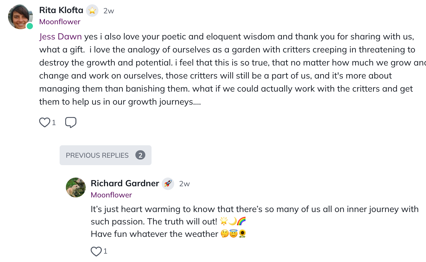 A dedicated, distraction-free space to connect with like-minded seekers. Think of it as your personal social platform without the noise, where every interaction is meaningful and supportive.